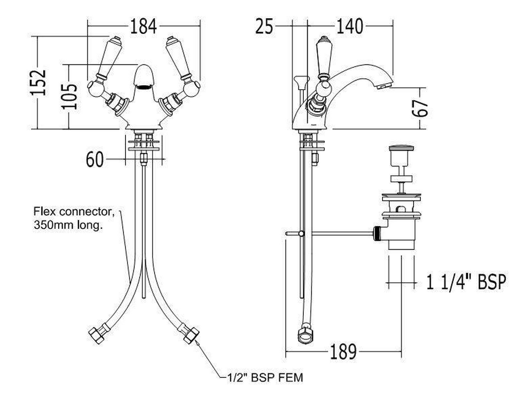 Смеситель для раковины Devon & Devon Black Dandy Смеситель для раковины, на 1 отв., с д/к, (цв. хром, ручки цв. чёрный), Black Dandy ZZ