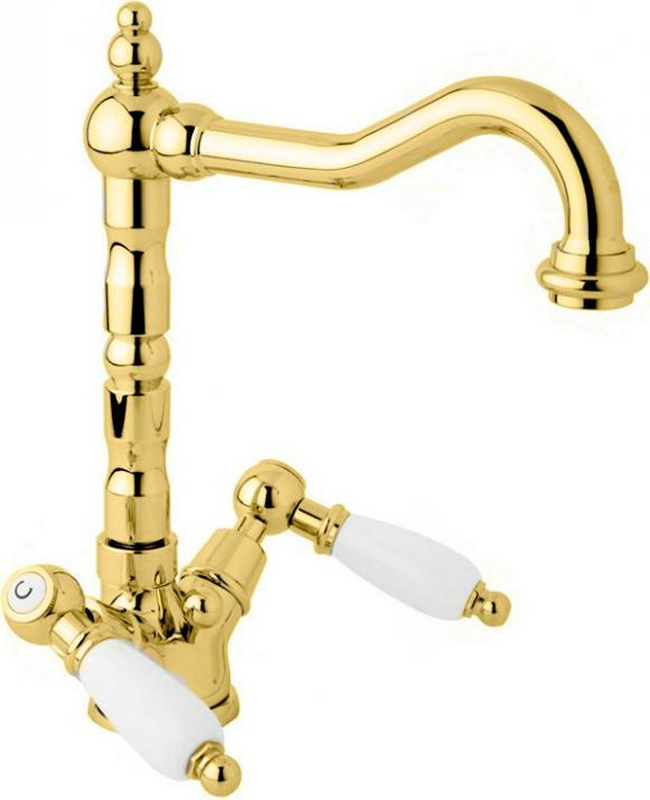 Смеситель для раковины Cezares First Смеситель для раковины, с д/к, (цв. золото, ручки белые), First ZZ