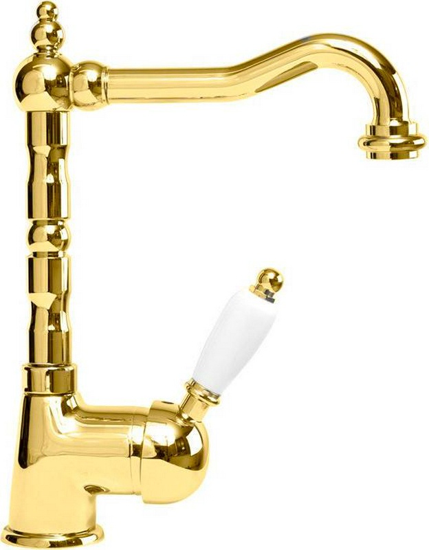 Смеситель для раковины Cezares Elite Смеситель для раковины, высокий с поворотным изливом, с д/к, (цв.золото 24К, ручка цв.белый), Elite ZZ
