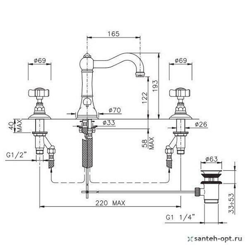 Смеситель для раковины Nicolazzi Tradizionale Смеситель для раковины на 3 отв. с повотным изливом и д/к (цв.Antique gold/ручки El Capitan), Nicolazzi ZZ
