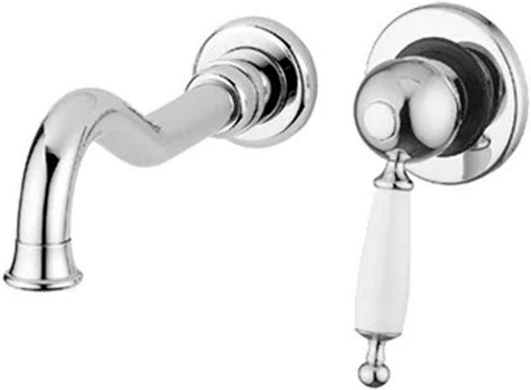 Смеситель для раковины Gaia Canterbury Смеситель для раковины, настенный, встраиваемый, на 2 отв., излив 190мм, (цв. золото, ручка цв. белый), Canterbury ZZ
