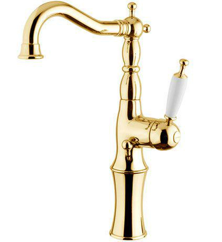 Смеситель для раковины Gaia Canterbury Смеситель для раковины, "Высокий" излив h280мм, (рычаг сбоку), с д/к, (цв. золото, ручка цв. белый), Canterbury ZZ