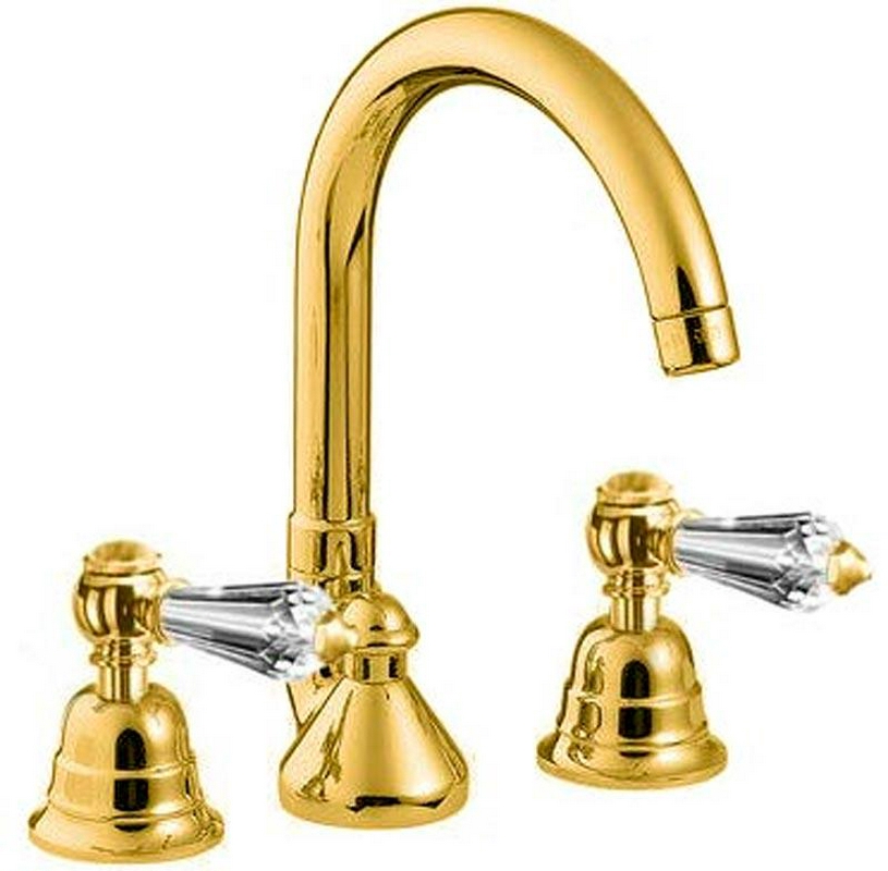 Смеситель для раковины 3M Old italy Смеситель для раковины высокий, закругл. излив, на 3 отв., с д/к, с ручками SW - Swarovski, (цв. золото), Old italy ZZ