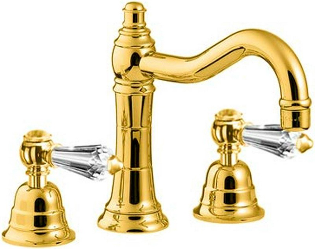 Смеситель для раковины 3M Old italy Смеситель для раковины, на 3 отв., Г-образн. излив, с д/к, (цв.золото, ручки SW - Swarovski), Old italy ZZ
