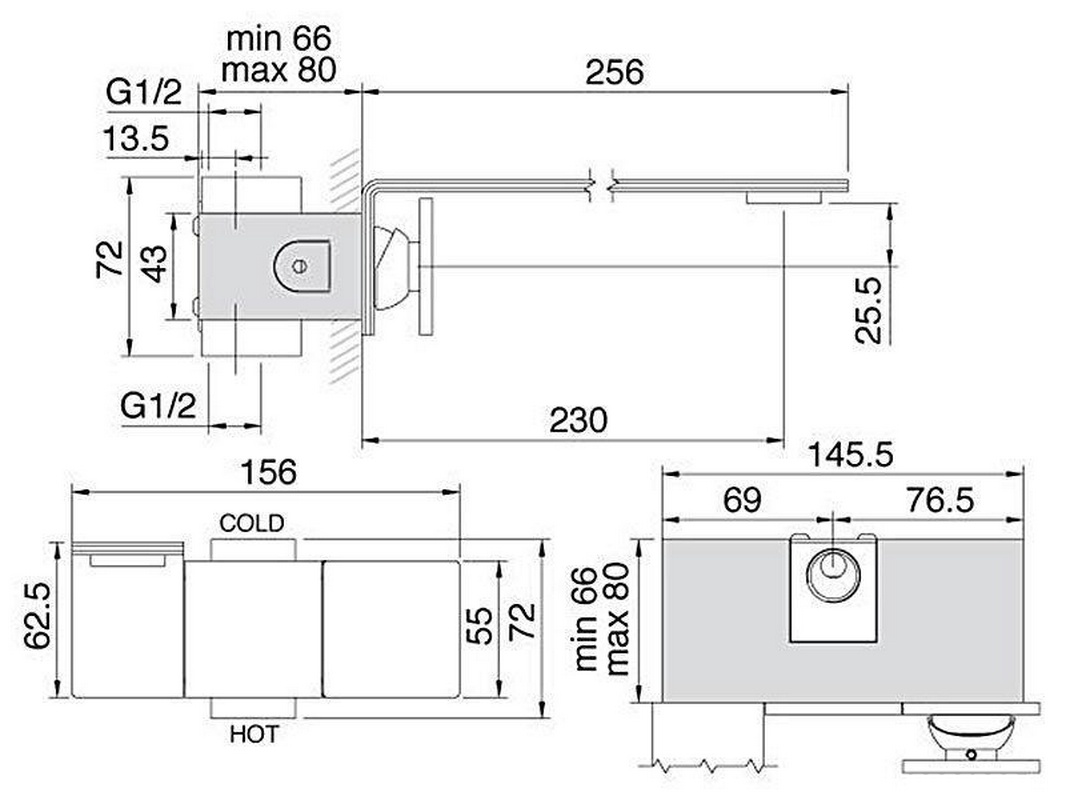 Смеситель для раковины 3M 5mm Смеситель для раковины, встраиваемый в стену, 1 ручк. вертик., излив 256мм, (цв. тертая сталь), 5mm ZZ