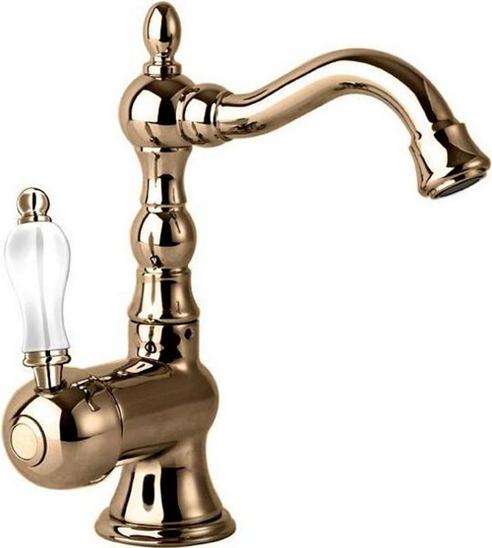Смеситель для раковины Cezares Venezia Смеситель для раковины, с поворотным изливом, с д/к, (цв.бронза, ручка цв.белая), Venezia ZZ