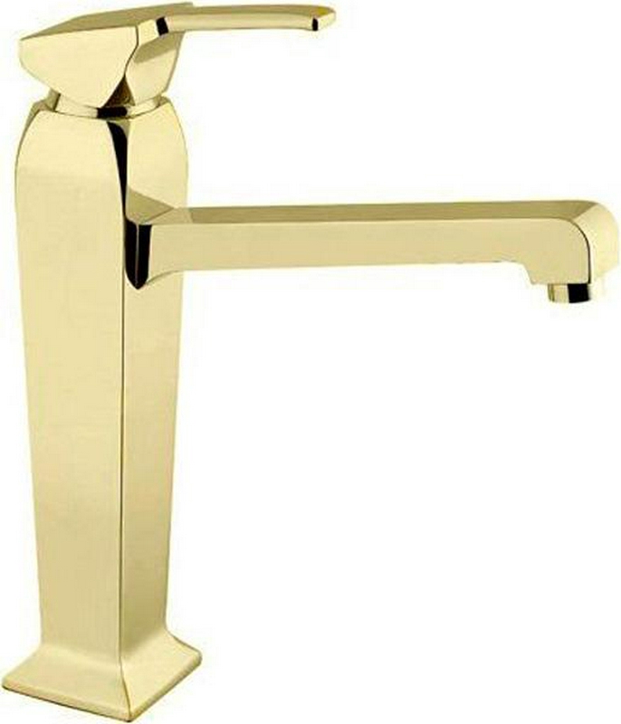 Смеситель для раковины, высокий, без донного клапана, цв.матовое золото
