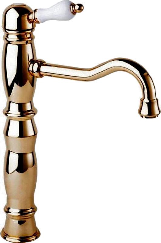 Смеситель для раковины, высокий, без донного клапана, цв.бронза ZZ
