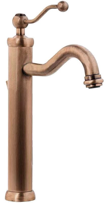 Смеситель для раковины, высокий, однорычажный, без донного клапана, бронза