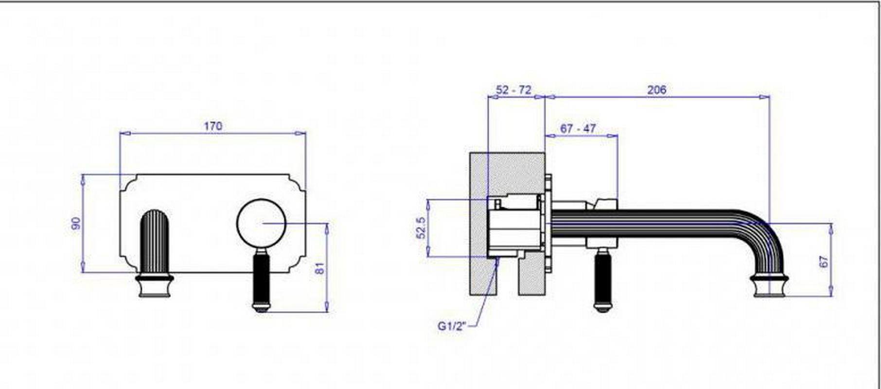 Смеситель для раковины Cezares Olimp Смеситель для раковины, встраиваемый в стену, излив 206мм, (цв.золото, одноручковый), Olimp ZZ