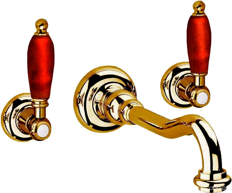 Смеситель для раковины Cezares First Смеситель для раковины, встраиваемый в стену, излив 215мм, (цв.бронза, ручки пластик цв.орех), Retro ZZ