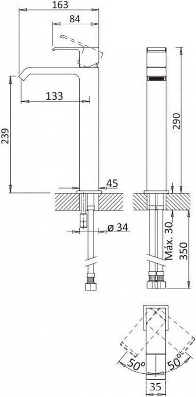 Смеситель для раковины Cezares Porta Смеситель для раковины, Высокий, с д/к, (цв.черный матовый), Porta ZZ
