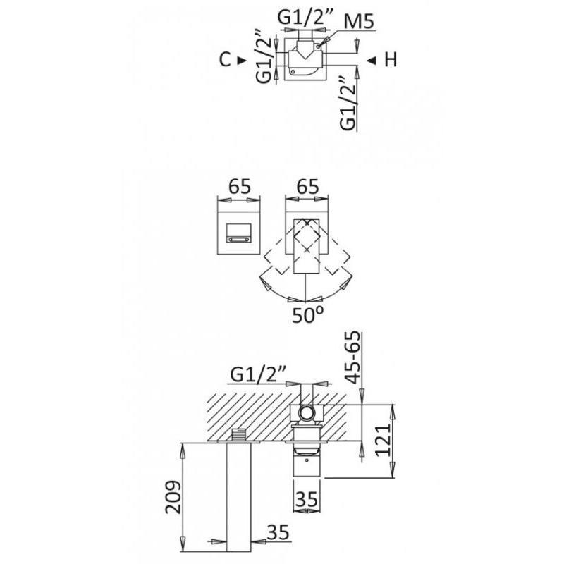 Смеситель для раковины Cezares Porta Смеситель для раковины настенный, излив 209мм, с д/к, (внутр.часть в компл.), (цв.белый матовый), Porta ZZ