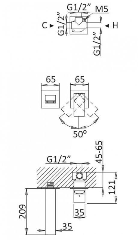 Смеситель для раковины Cezares Porta Смеситель для раковины настенный, излив 209мм, с д/к, (внутр.часть в компл.), (цв.бронза), Porta ZZ