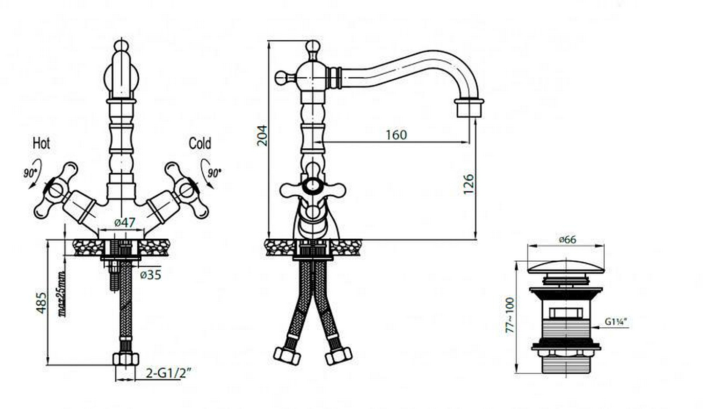 Смеситель для раковины Cezares Retro Смеситель для раковины, с поворотным изливом, с нажимной пробкой д/к, (цв. хром), Retro ZZ