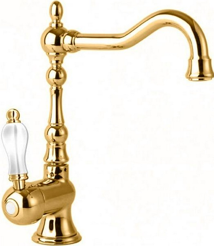 Смеситель для раковины Cezares Venezia Смеситель для раковины, "Высокий" с поворотным изливом, с д/к, (цв.золото, ручка цв.белая), Venezia ZZ