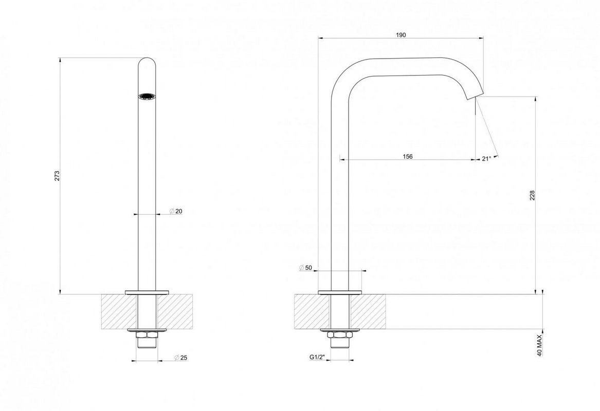 Смеситель для раковины Gessi Flessa Отдельностоящий излив h=230мм , цвет: steel brushed,Gessi 316 ZZ