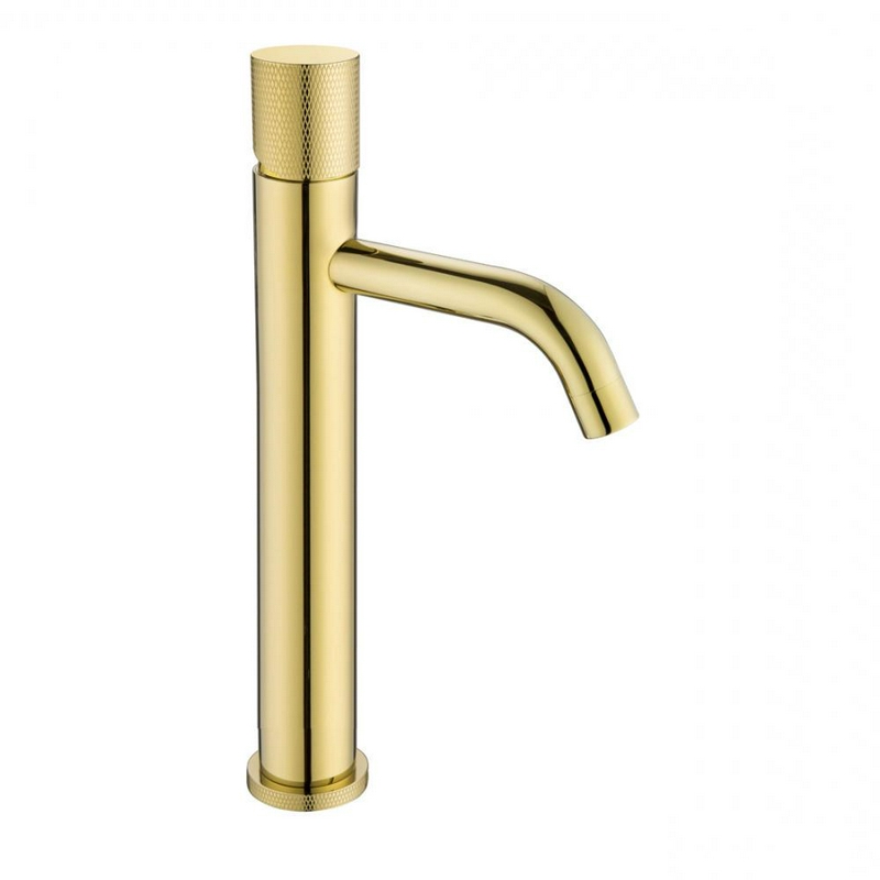 Смеситель для раковины, высокий, без донного клапана, цв.матовое золото