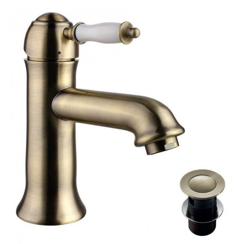 Смеситель для раковины, с д/к, (цв.бронза, ручка цв.белый), Aphrodite ZZ