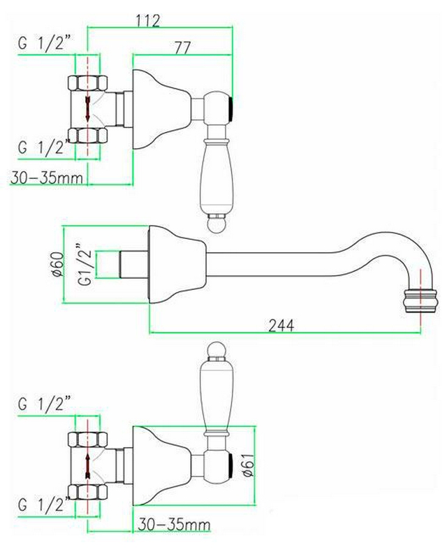 Смеситель Fiore Coloniale 02ZZ0636 С ВНУТРЕННЕЙ ЧАСТЬЮ, для раковины 6x12x25 Fiore coloniale s359006