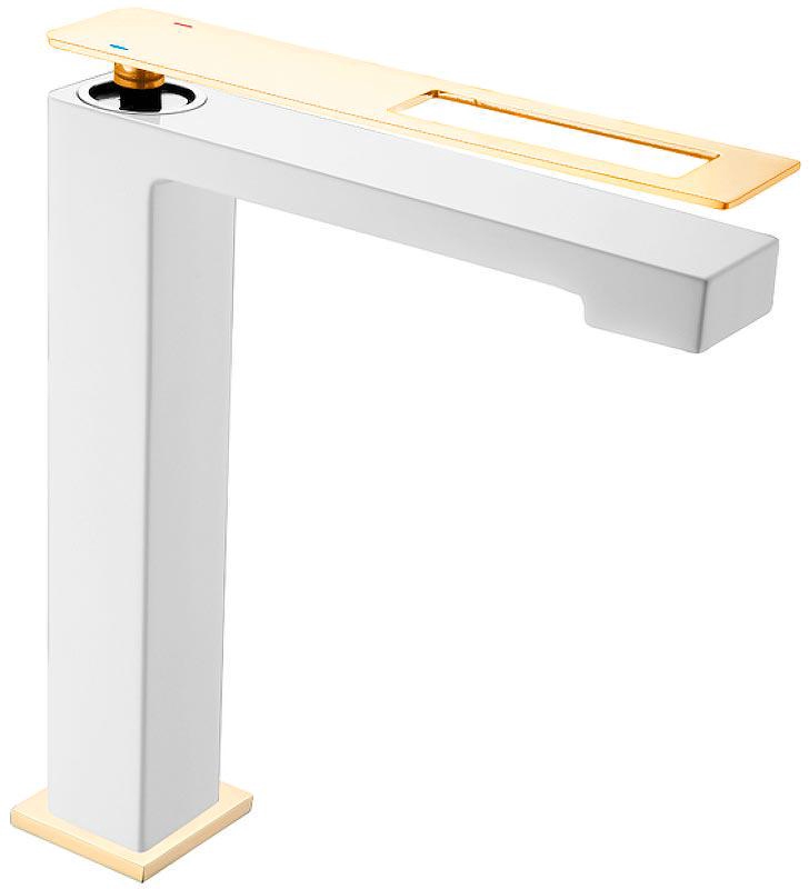 Смеситель для умывальника "MISTA", с донным клапаном, цв. белый/золото ZZ