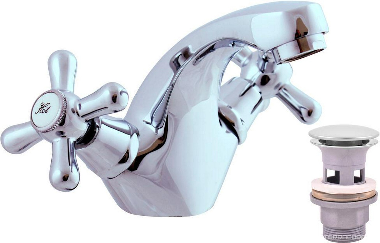Смеситель для раковины, донный клапан в комплекте, цв. хром