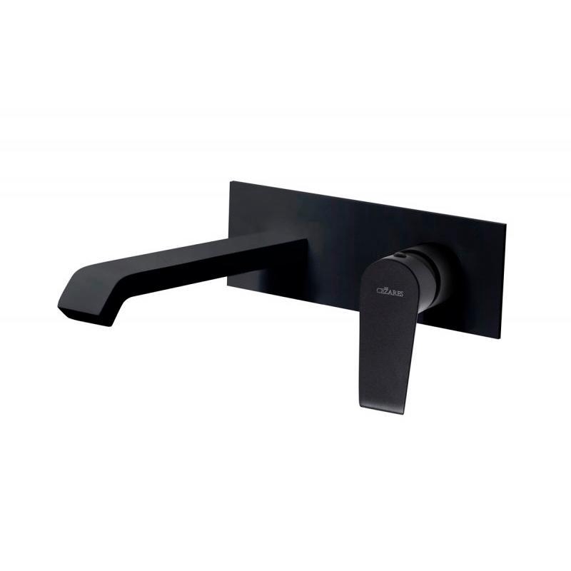 Смеситель для раковины, встраиваемый в стену, излив 195мм, встраив.часть в компл., (цв.черный матовый), Priority