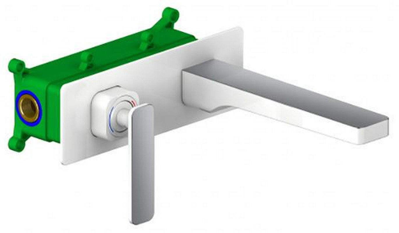 Смеситель для раковины, встраиваемый в стену, излив 225мм, внешняя часть (БЕЗ внутр. части – арт. 13622180), (цв.матовый белый), Finoris ZZ