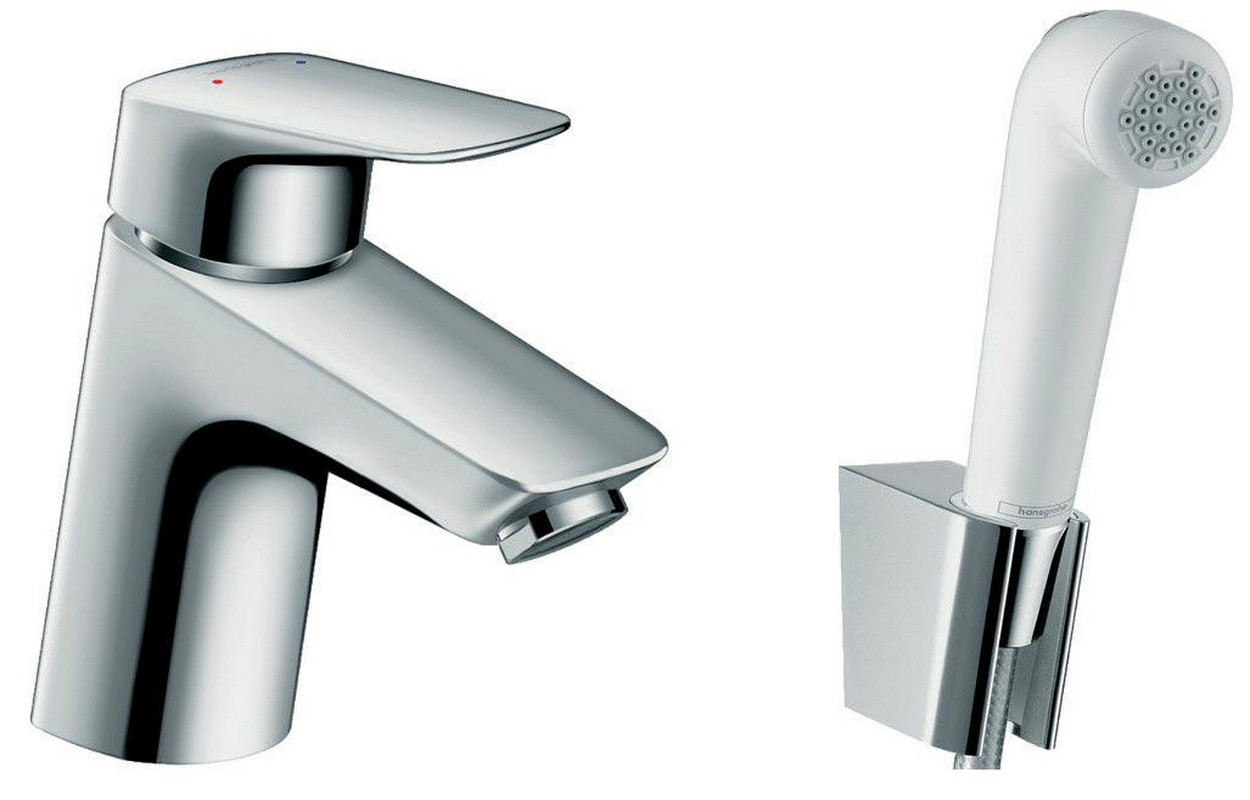 Смеситель для раковины Hansgrohe Logis Смеситель для раковины, с гигиеническим душем, шланг д/д 1,6м, кронштейн в компл., без д/к, (цв.хром), Logis E