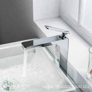 Смеситель для раковины, высокий, без донного клапана, цв.черый матовый