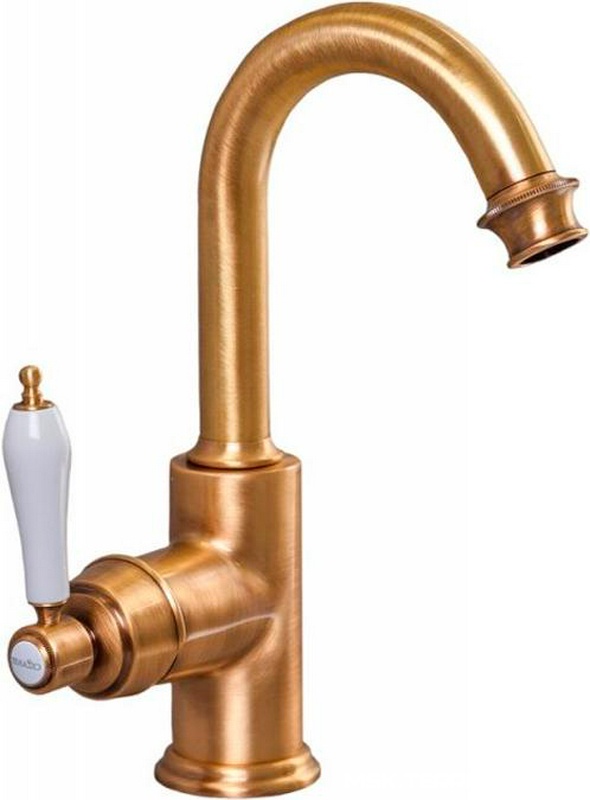 Смеситель для раковины, высокий с поворотным изливом, (цв.бронза, ручка цв.белый), Margot ZZ