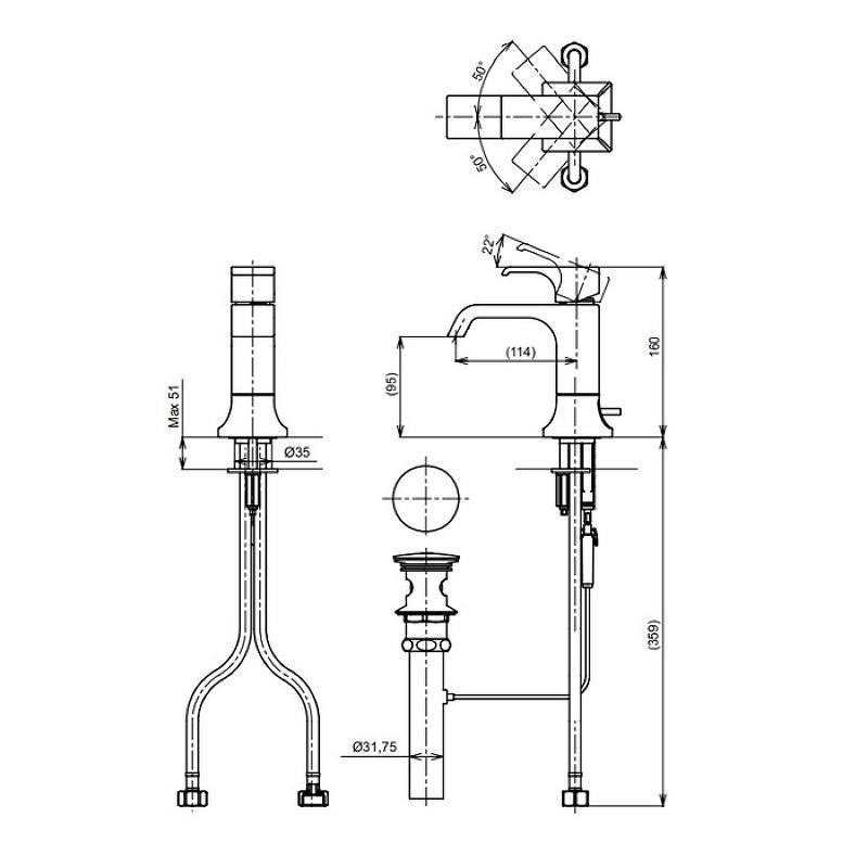 Смеситель для раковины, однорычажный, с дон. клап., гибк.подвод., хром