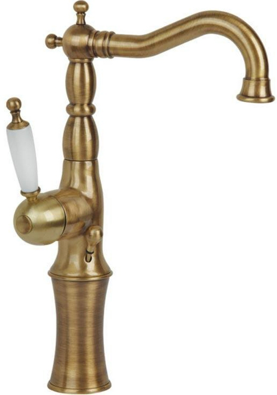 Смеситель для раковины, высокий с поворотным изливом, (цв.бронза, ручка цв.белый), Margot ZZ