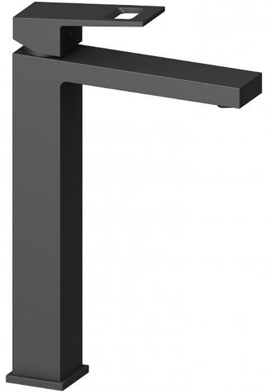 Смеситель для раковины, высокий, без донного клапана, цв.черый матовый