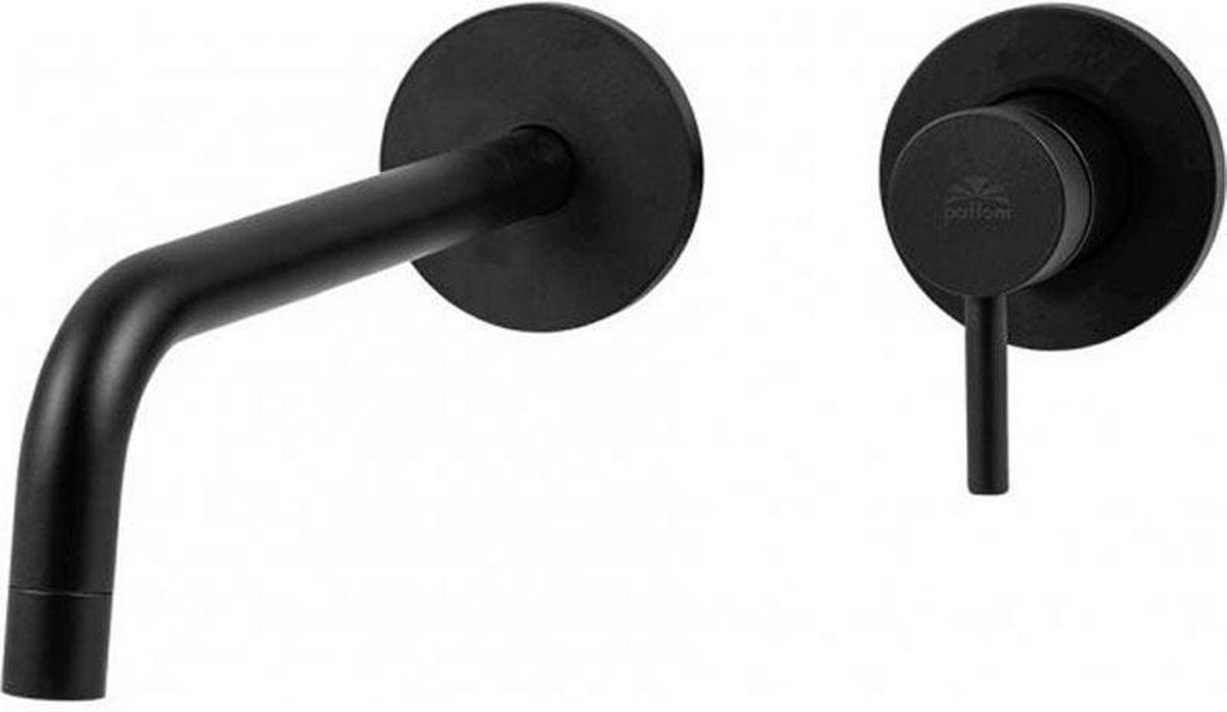 Смеситель для раковины, встраиваемый в стену, излив 195мм, встраив.часть в компл., (цв.черный матовый), Priority