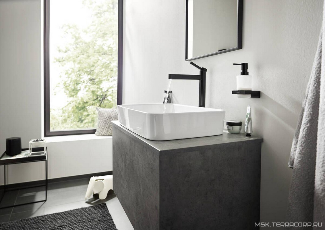 Смеситель для раковины Hansgrohe Finoris Смеситель для раковины, 260, Высокий, со сливным клапаном Push.Open, (цв.матовый черный), Finoris ZZ