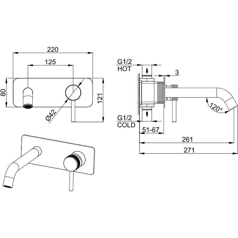 Смеситель для раковины Allen Brau Priority Смеситель для раковины, встраиваемый в стену, излив 195мм, встраив.часть в компл., (цв.хром), Priority ZZ