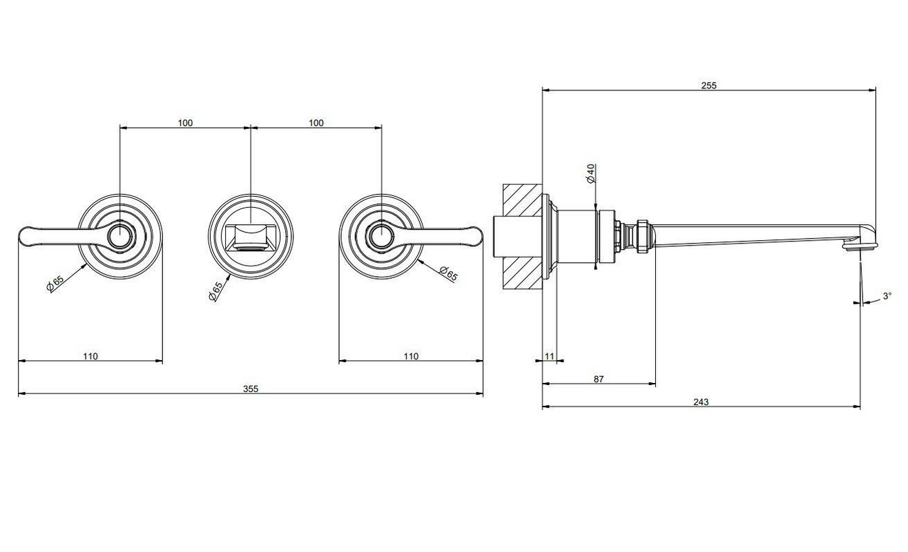 Смеситель для раковины Gessi Venti20 Смеситель для раковины, на 3 отв., встраив. в стену, излив 243мм, (внешние части, БЕЗ встаив.части арт.45089 031), (цв.Copper PVD), Venti20 ZZ