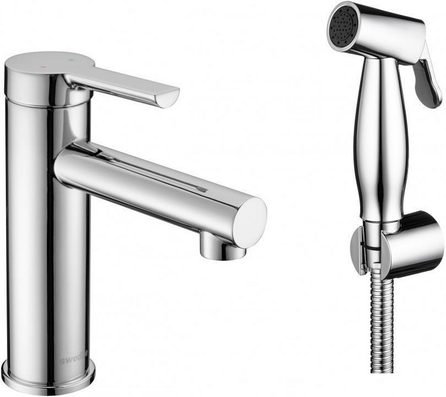 Смеситель для раковины, c гигиенической лейкой, без д/к, (цв.хром), ZZ Swedbe Diana 1060