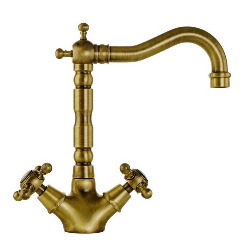Смеситель для раковины, с поворотным изливом, с нажимной пробкой д/к, (цв. бронза), Retro ZZ