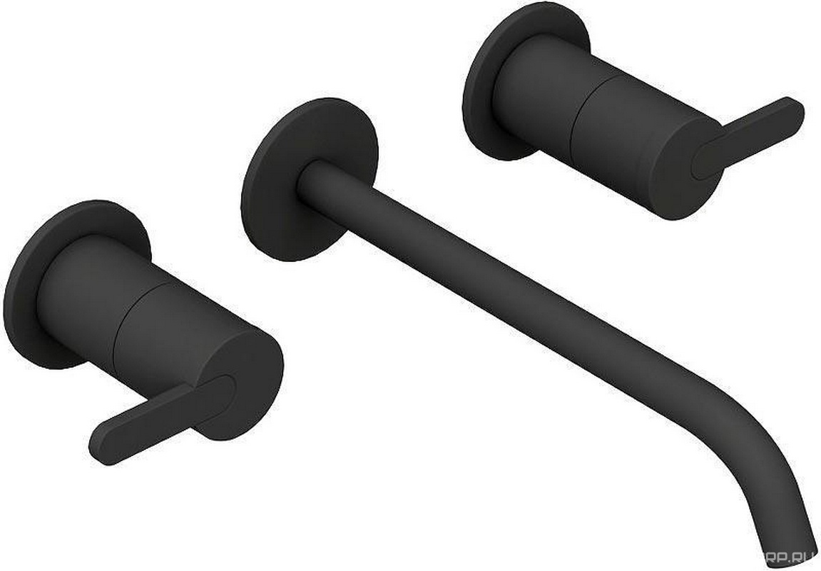 Смеситель для раковины на 2 отверстия, настенный монтаж, внутр. часть в комплекте, цв.черный