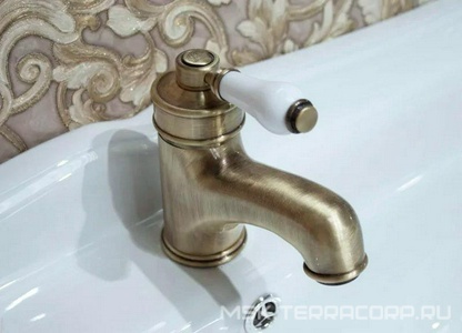 Смеситель для раковины, однорычажный, без донного клапана, бронза