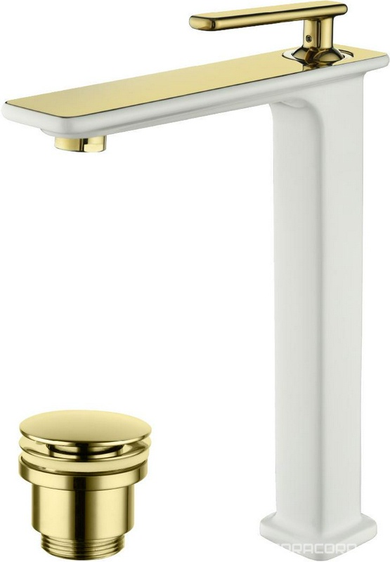 Смеситель для раковины высокий LM6409WG, 5x15x19 см, донный лапан цв золото, см-ль цв белый+золото, ZZ Lemark Mista LM6409WG