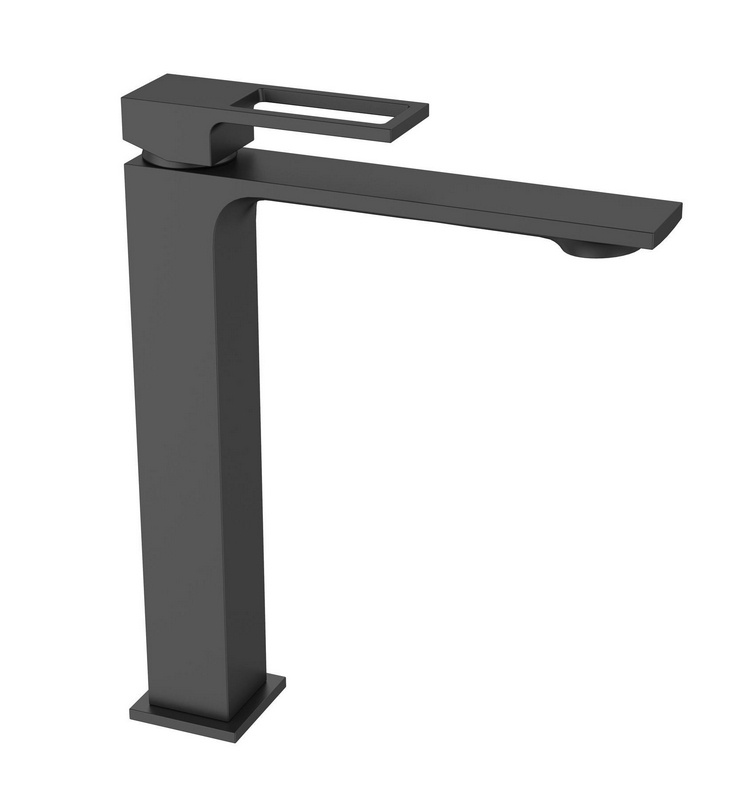 Смеситель для раковины, высокий, без донного клапана, цв.черый матовый