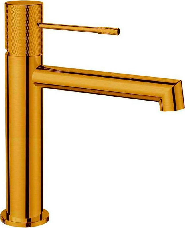 Смеситель для раковины, высокий, без донного клапана, цв.матовое золото