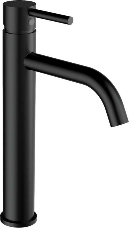 Смеситель для раковины, высокий, без донного клапана, цв.черый матовый