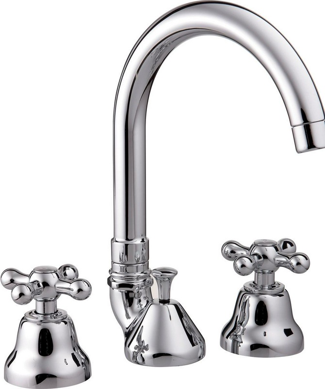 Смеситель для раковины 3M Romantica Cмеситель для раковины на 3 отв., Высокий излив, с д/к, (цв. хром), Romantica ручки Ponte Vecchio ZZ