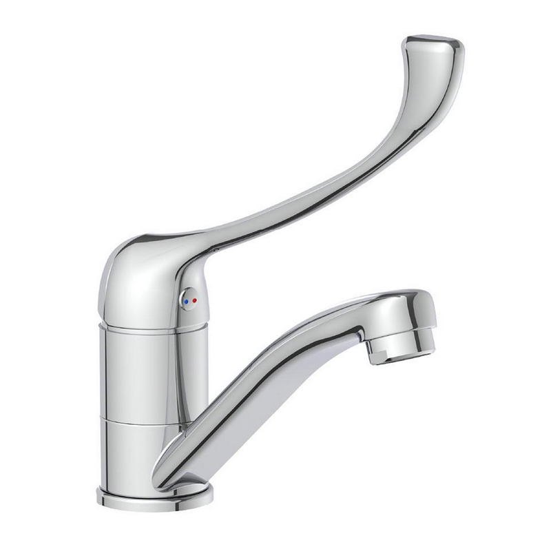 Смеситель однорычажный безопасный для раковины, рычаг 120 мм, гладкий корпус, высокое исполнение ZZ