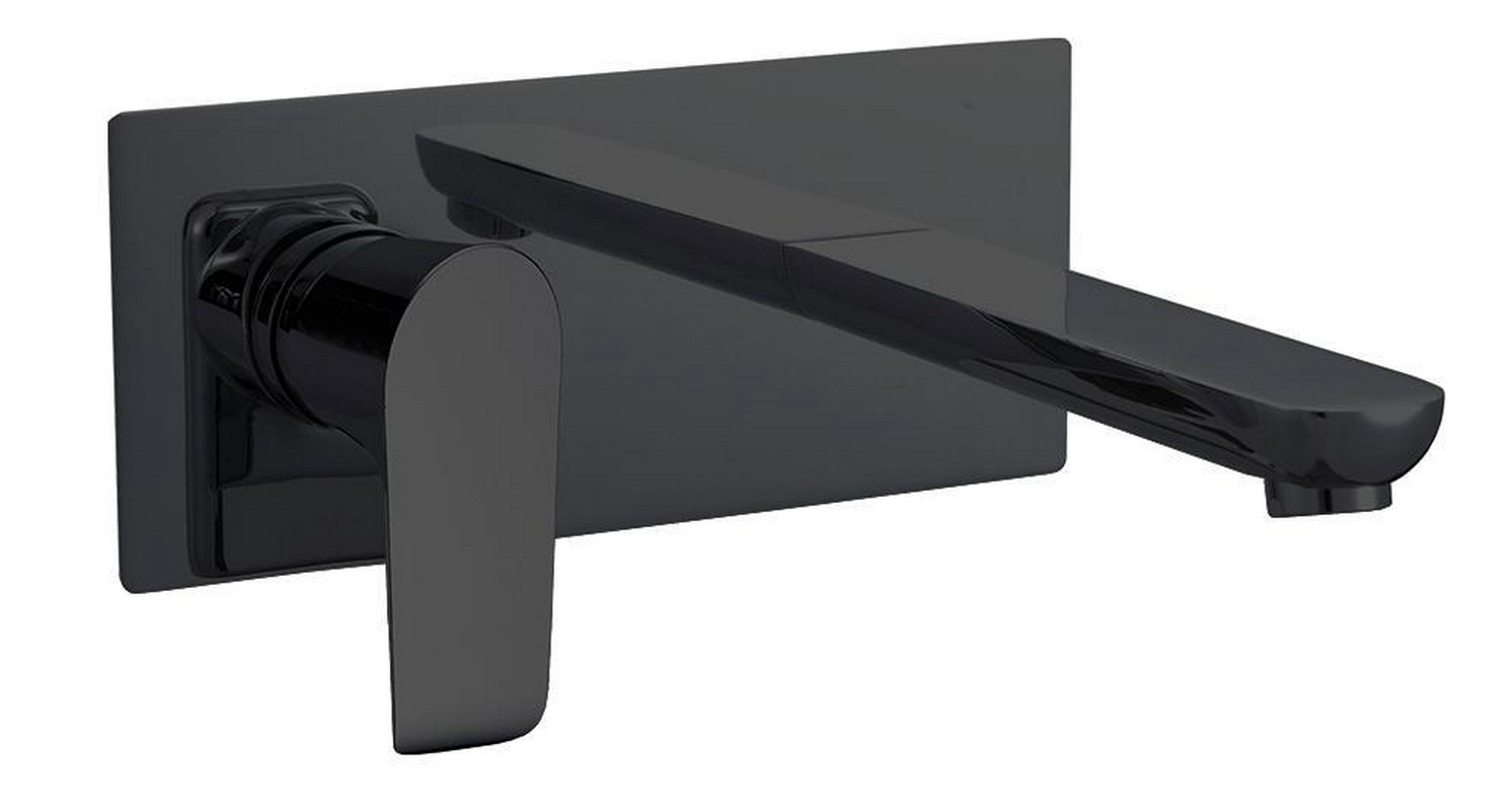 Смеситель для раковины, встраиваемый в стену, излив 195мм, встраив.часть в компл., (цв.черный матовый), Priority