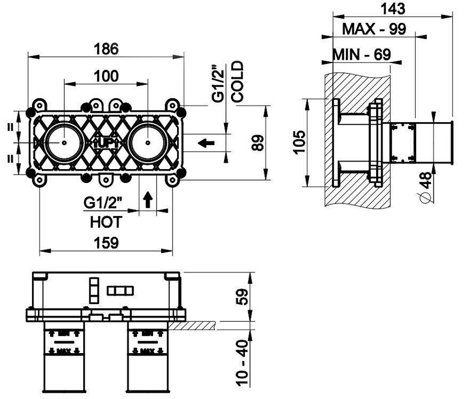 Смеситель для раковины, встраиваемый в стену, излив 180мм, встр.часть, нажимной д/к, в компл., (цв.бронза), Ermitage Mini ZZ